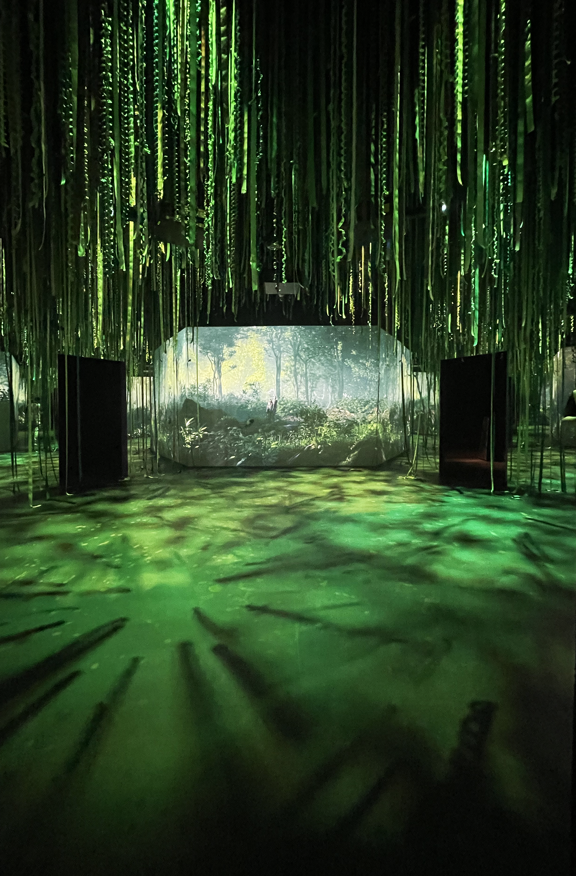 Trois écrans entourent les visiteurs et simulent la chasse