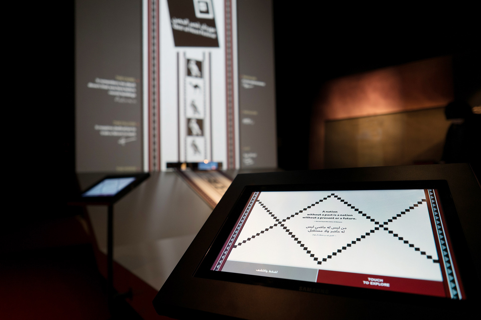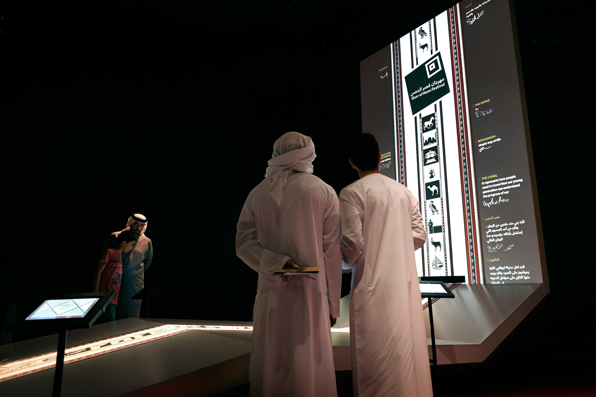 Using touch screens, visitors were invited to select an icon and weave their own narratives into the Qasr al Hosn story. A professional weaver working on-site with a digital weaving machine then incorporated that icon into an ongoing Sadu tapestry.